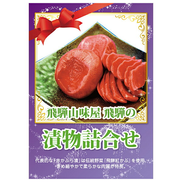 飛騨山味屋 飛騨の漬物詰合せ代表的な「赤かぶら漬」は伝統野菜『飛騨紅かぶ』を使用、きめ細やかで柔らかな肉質が特長で、程よい酸味と独特の甘みがあとをひきます。