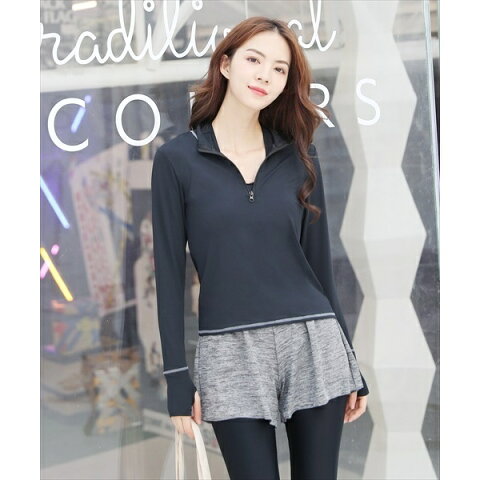 テディショップ teddyshop 水着 花柄ラッシュガード タンキニバックシャン4点セット (M:ブラック×レッドフラワー)【返品不可商品】